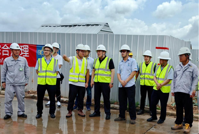在項目現(xiàn)場,趙亮與華誼泰國公司總經(jīng)理徐張宇、項目負責(zé)人朱超,中化學(xué)裝備科技集團有限公司副總經(jīng)理李宏,一同實地查看了現(xiàn)場質(zhì)量安全和施工進度情況,并聽取了項目情況匯報。