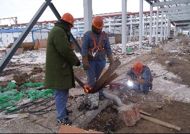而今的通遼已進(jìn)入冬季,所下的雪,一時很難溶化,刺骨的寒風(fēng),使每位來自南方的人員,無法適應(yīng)這一切。為了實現(xiàn)目標(biāo),大家都在默默地承受著,管廊上余留的積雪,被風(fēng)一吹,成了溶不化的冰塊,給現(xiàn)場施工增加了很大的難度,安全上也存在著極大的隱患。