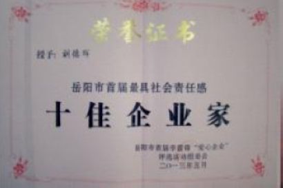 7月25日,岳陽市召開首屆學雷鋒“愛心100”企業暨最具社會責任感“雙十佳”表彰大會。會上,公司榮獲岳陽市首屆學雷鋒“愛心100”企業、岳陽市首屆最具社會責任感十佳企業提名獎榮譽稱號,公司黨委書記、董事長劉德輝獲“岳陽市首屆最具社會責任感十佳企業家”榮譽稱號。公司黨委副書記何玉文到會并參加了授獎儀式。