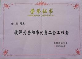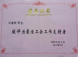 9月30日,在岳陽市總工會召開的第六屆代表大會上傳出喜訊。公司工會榮獲“岳陽市先進基層工會”,公司黨委書記、董事長劉德輝被岳陽市總工會授予“岳陽市最佳工會工作支持者”榮譽稱號,公司楊艷被岳陽市總工會授予“岳陽市優秀工會工作者”榮譽稱號。