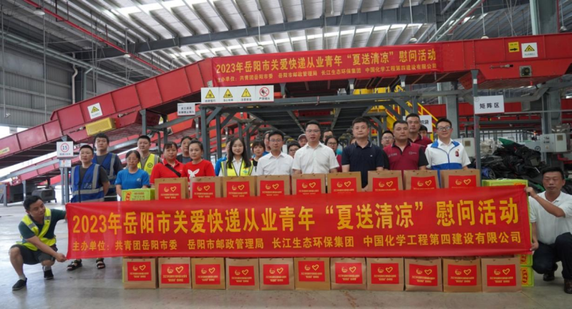 7月18日下午,公司聯(lián)合岳陽團(tuán)市委、市郵政管理局、長江生態(tài)環(huán)保集團(tuán)在科德物流園開展2023年關(guān)愛快遞從業(yè)青年“夏送清涼”慰問活動。共青團(tuán)岳陽市委書記綦小廣、岳陽市郵政管理局局長殷宏亮出席慰問活動。長江生態(tài)環(huán)保集團(tuán)湖南區(qū)域公司黨群工作部、公司團(tuán)委、岳陽污水治理項(xiàng)目部相關(guān)負(fù)責(zé)人員參加慰問活動。