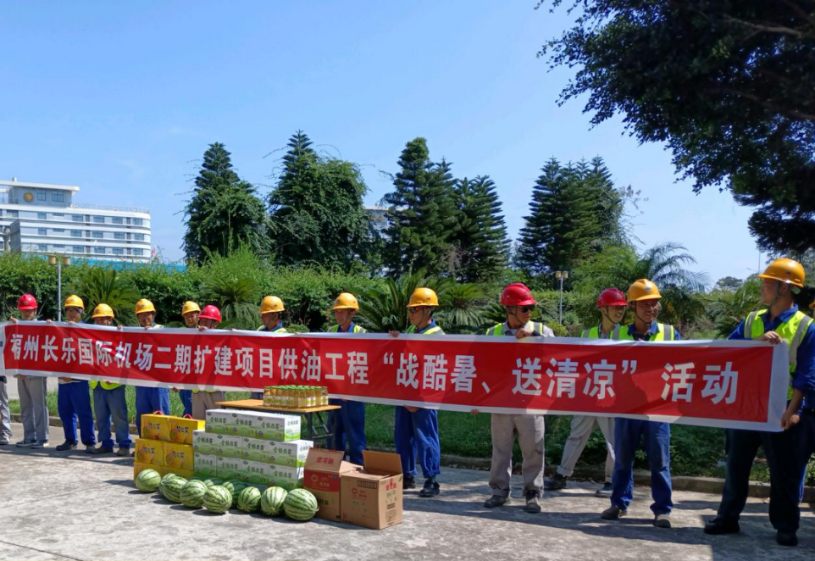 7月23日,公司項(xiàng)目中心福州長樂國際機(jī)場供油工程項(xiàng)目部開展“戰(zhàn)酷暑、送清涼”慰問活動。