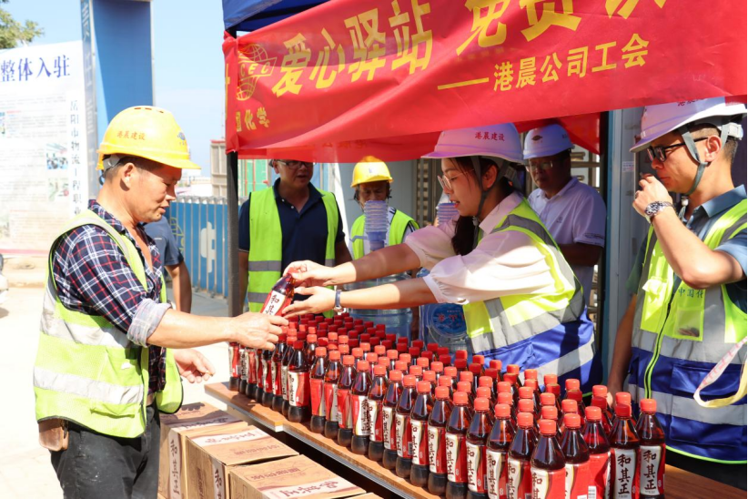 活動中,港晨公司工會為一線參建者們搭建了“愛心驛站”,驛站內(nèi)配備防暑降溫物品、涼茶、礦泉水、冰棒,解決了一線工人在建設(shè)期間的飲水供給、納涼解暑等實(shí)際問題,切實(shí)打造了一線工人的“加油站”“歇腳地”。