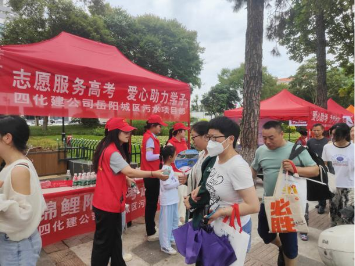 為更好地服務(wù)廣大高考考生及家長(zhǎng),項(xiàng)目部志愿者們專門在岳陽(yáng)市第十四中學(xué)高考考點(diǎn)附近搭建遮陽(yáng)棚,設(shè)置愛心服務(wù)點(diǎn),為考生提供礦泉水、防蚊避暑用品和基礎(chǔ)醫(yī)藥器材等助考物品,并自發(fā)組建黨員先鋒車隊(duì)、工人先鋒車隊(duì)、青年先鋒車隊(duì)、現(xiàn)場(chǎng)服務(wù)隊(duì)協(xié)助進(jìn)行愛心送考、文明交通勸導(dǎo)等志愿服務(wù)。