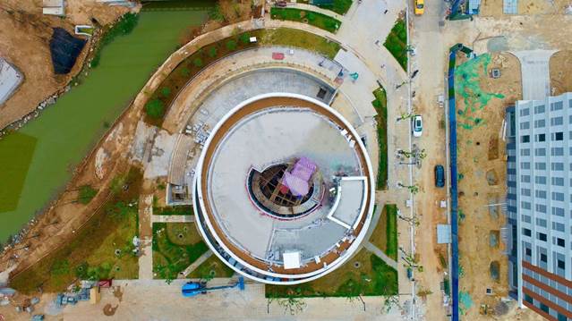 圓,是EOD項目B地塊內的職工活動中心。B7棟以其獨特的圓形造型,環繞在建筑周邊的坡道,結合場地高差及景觀,成為一道靚麗的風景線,即將見證著B地塊的“圓滿”完工。作為休憩、娛樂的空間,它為思鄉人打造了一處溫馨的港灣。