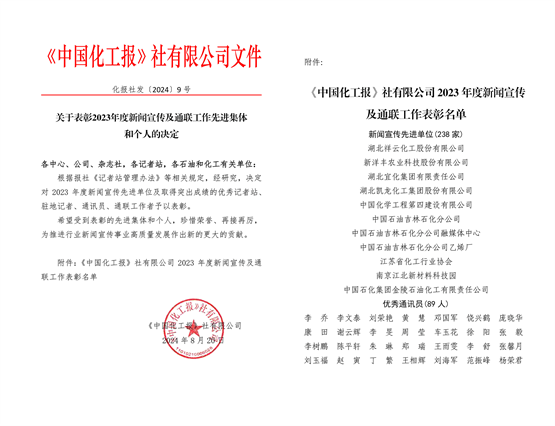 公司獲《中國化工報》新聞宣傳工作先進單位