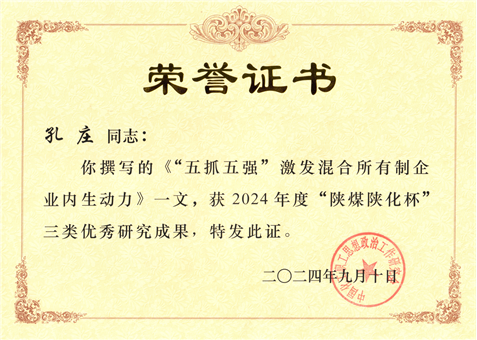孔莊撰寫(xiě)的政研論文獲評(píng)2024年度“陜煤陜化杯”三類(lèi)優(yōu)秀成果