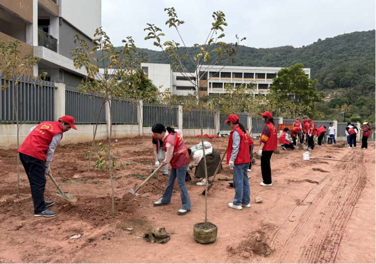 在廣大附中高新區實驗學校后山,“認領一棵勒杜鵑  共繪生態新畫卷”主題活動如火如荼開展。華南公司黨總支聯合廣州市黃埔區云埔街道云綠社區,組織黨員、團員及青年志愿者共同揮鍬鏟土、扶苗填坑、提水澆灌、干勁十足。在大家的共同努力下,25棵黃槐樹和20余株勒杜鵑錯落扎根,在山林中“安家落戶”。每株花苗懸掛專屬“認領牌”,形成兼具生態與人文價值的校園景觀。活動以黨建共建為紐帶,深化落實集團公司“135”發展戰略,既強化了企地協作,又提升了職工環保意識,為高質量發展增添生態底色。