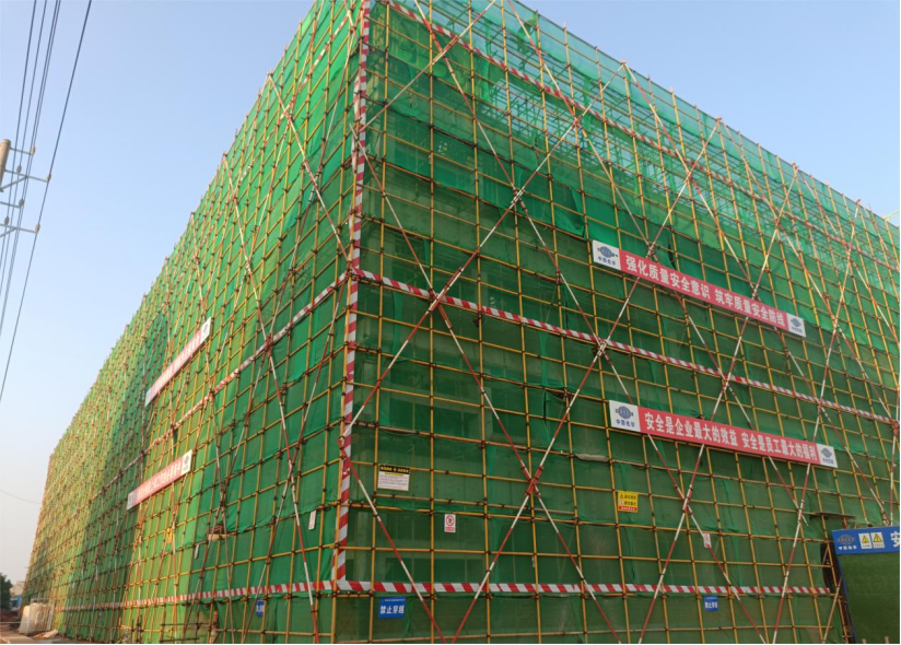 該項目總建筑面積1.67萬平方米,包括1棟多層廠房、1棟單層門衛輔助用房。其中廠房標準層7.8米,地下室消防水池為深基坑,東側緊鄰高壓輸電線,主體結構與室外交叉作業,施工場地狹小。自5月12日項目開工以來,面對梅雨季節和高溫酷暑,項目部以“開工即決戰”姿態,奮力組織開展突擊大干,施工人員日夜奮戰、頑強拼搏,僅用90天就順利完成項目封頂。
